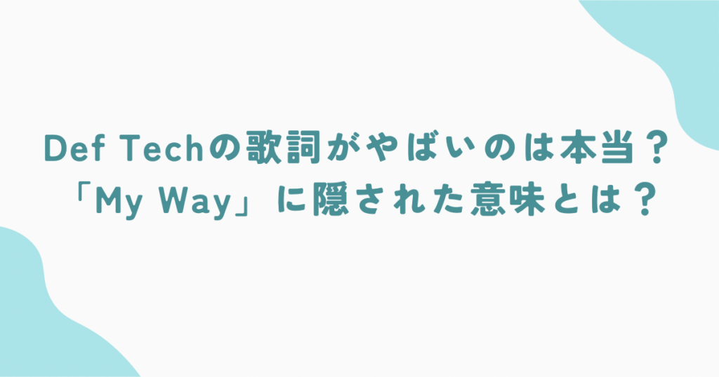 Def Techの歌詞がやばいのは本当?「My Way」に隠された意味とは?