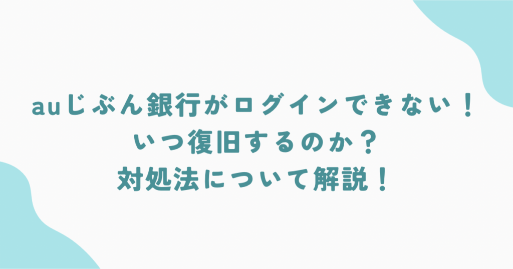 auじぶん銀行がログインできない!いつ復旧するのか?対処法について解説!