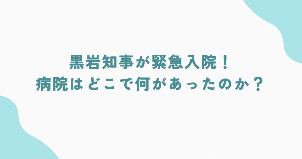 黒岩知事が緊急入院!病院はどこで何があったのか、いつ退院?