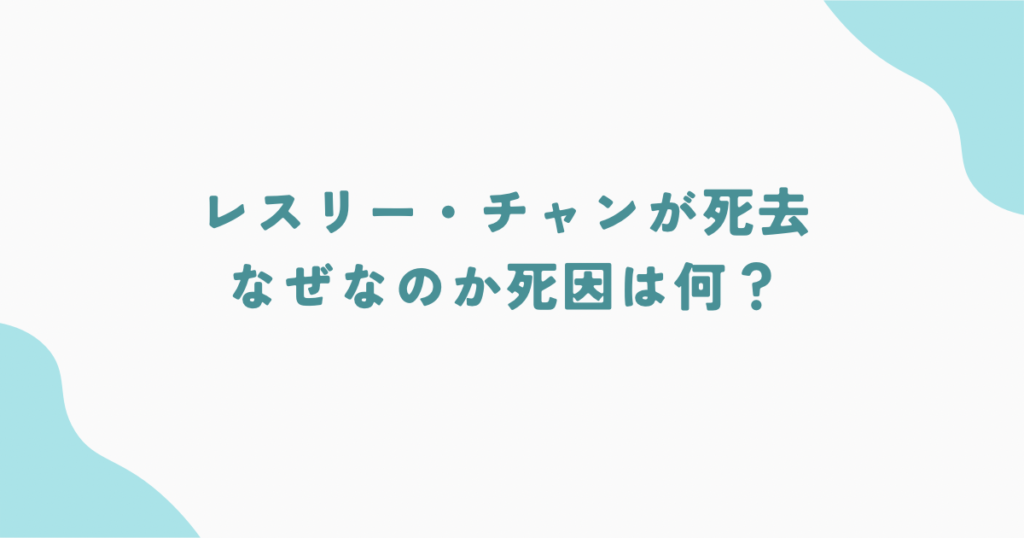 レスリー・チャンが死去、なぜなのか死因は何?