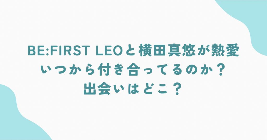 人気ダンス&ボーカルグループ「BE:FIRST」のLEOさんと、モデル・女優として活躍する横田真悠さんの熱愛が話題になっています。 トップアーティストと人気タレントのビッグカップル誕生に、ファンの間でも驚きの声が広がっています。 交際はいつからなのか... 芸能