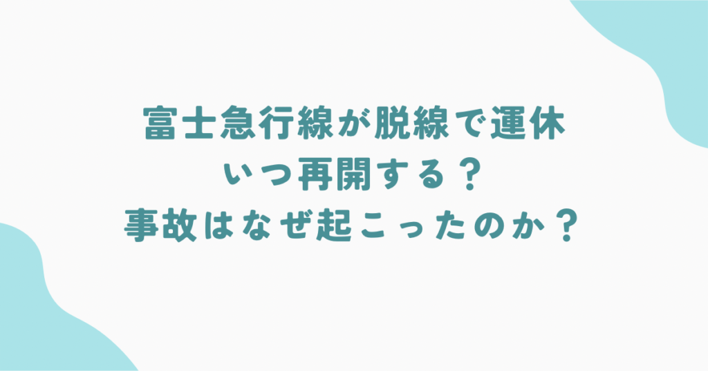 富士急行線が脱線で運休、いつ再開する?事故はなぜ起こったのか?