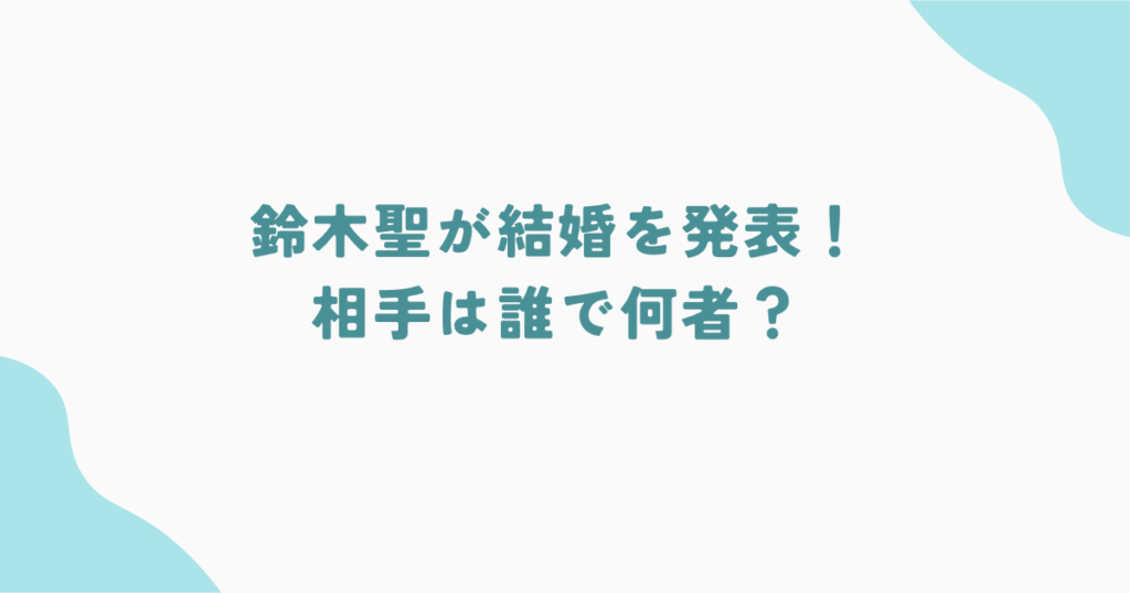 グラビアアイドルとして人気を集めている鈴木聖(すずき ひじり)さんが、2026年3月6日に結婚したことを発表しました。突然の報告に驚いたファンも多いのではないでしょうか。 お相手はYouTubeチャンネル「スロパチステーション」で活動するれんじろうさん... 芸能