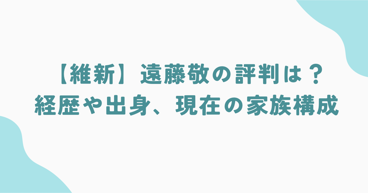 この記事では、遠藤敬さんの評判や経歴、出身地、そして家族構成までをわかりやすく紹介します。