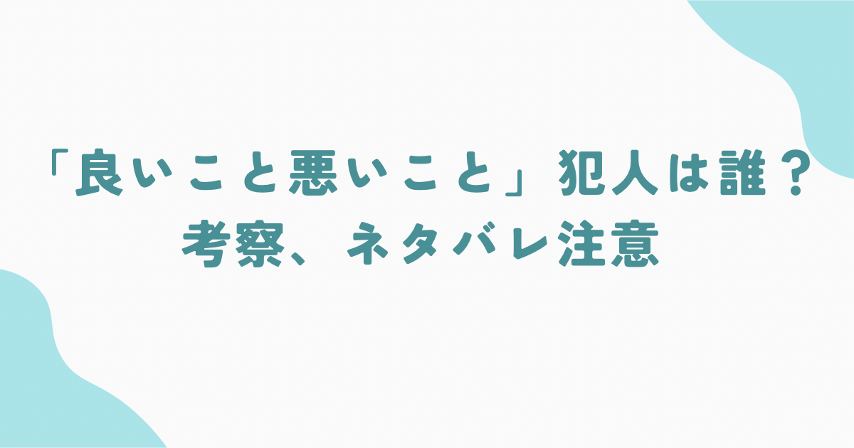 土曜ドラマ『良いこと悪いこと』第6話「傘」が放送され、物語は新たな展開を迎えました。今回は園子が世間から疑われる立場になり、4人目の被害者の登場や学級委員長・小林の過去が明らかになる衝撃回です。この記事では、第6話のネタバレを含めつつ、犯人や伏線について徹底考察していきます。