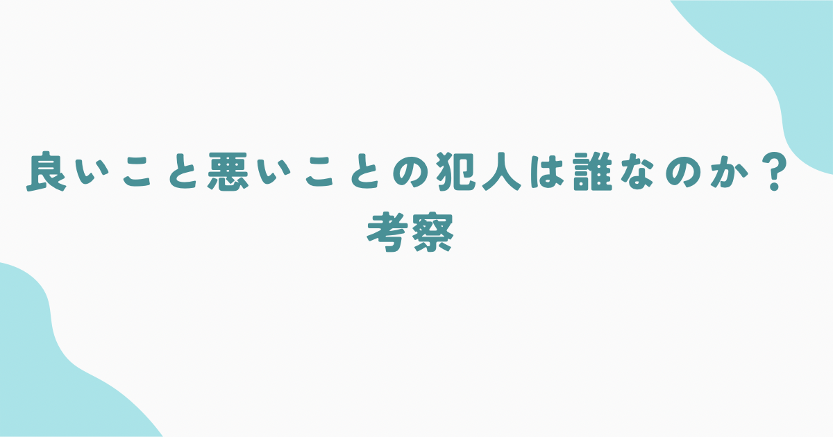 『良いこと悪いこと』の真犯人は、婚約者である宇都見啓でした。彼の動機は、瀬戸紫苑の死に対する復讐であり、過去のイジメや事件に関わった人物たちに報復を行いました。しおん自身はピアニストとして夢を叶えましたが、トラウマが再発したことで悲しい結末を迎えます。共犯者の存在や心理的な背景など、まだ完全には解明されていない部分もあり、視聴者に深い余韻を残す結末となっています。