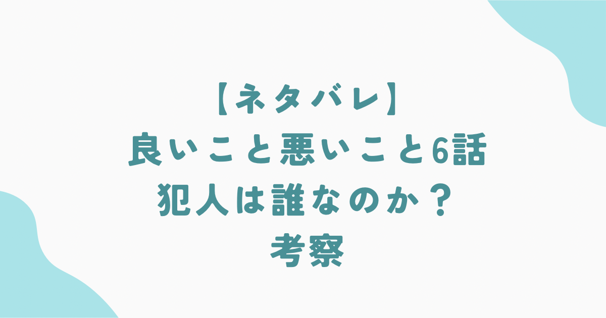 『良いこと悪いこと』6話 考察まとめ