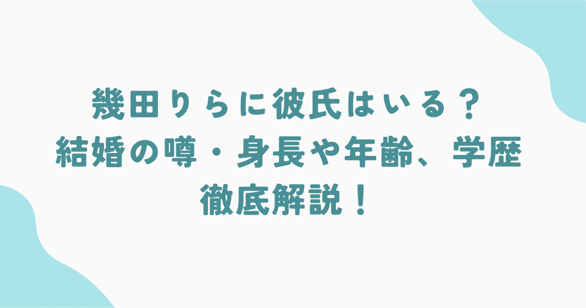 透き通る歌声と自然体の人柄から、多くのファンに愛されていますが、「彼氏はいるの?」「結婚の噂は本当?」「身長や年齢、学歴は?」など、プライベートに関する疑問を持つ人も多いようです。