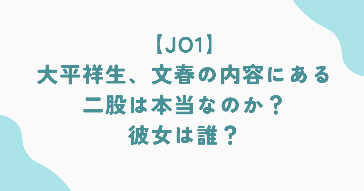 【JO1】大平祥生、文春の内容にある二股は本当なのか?彼女は誰?