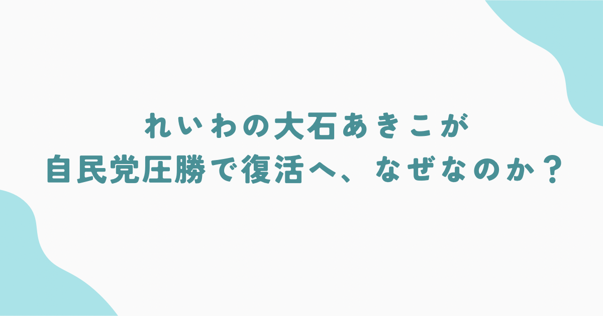 れいわ新選組・大石あきこ氏が「復活」と注目された背景には、自民党の歴史的大勝と、選挙制度の想定外の作用があった。