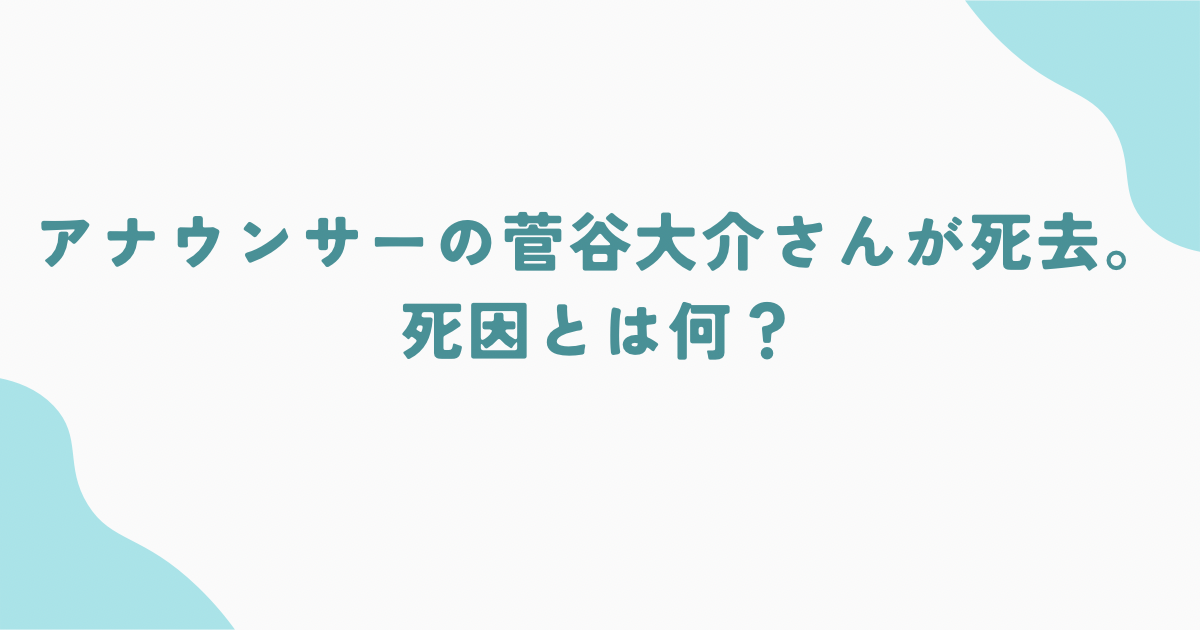 この記事では、菅谷大介さんの死因やこれまでの闘病生活、そして復帰までの経緯についてまとめました。