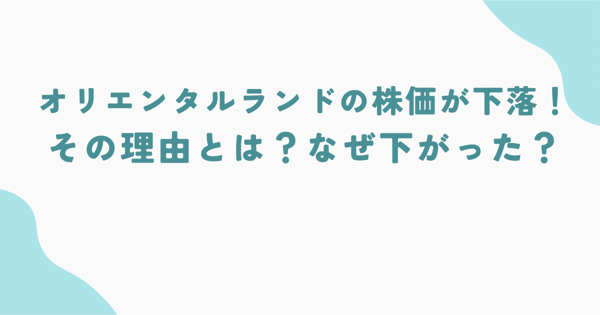 東京ディズニーリゾートを運営する「オリエンタルランド(OLC)」の株価が急落しました。