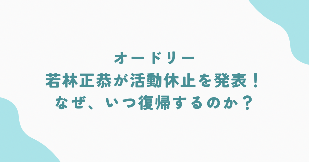 お笑いコンビ「オードリー」の若林正恭さん(47)が、約3週間の休養に入ることが発表されました。突然のニュースに驚いたファンも多いのではないでしょうか。
