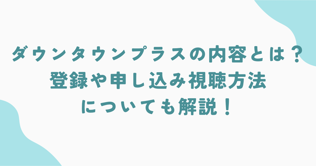 本記事では、「DOWNTOWN+」の配信内容・料金・登録方法・視聴のやり方まで、すべてわかりやすく解説します!