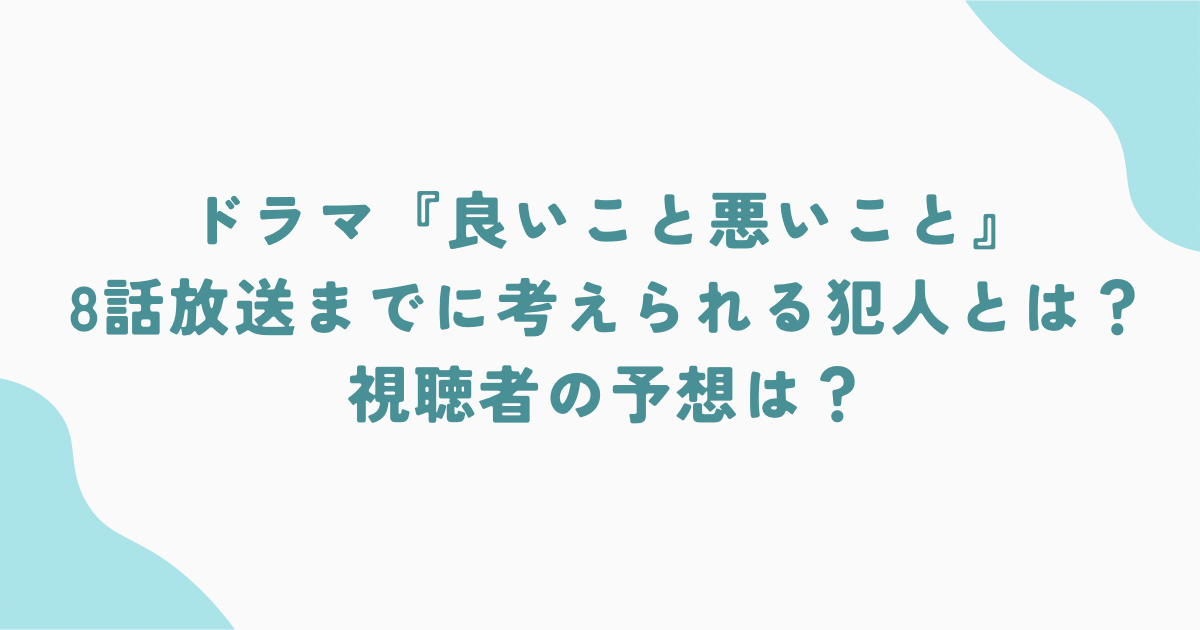 『良いこと悪いこと』第8話放送前の段階では、犯人像が複雑に描かれており、視聴者の考察も二分しています。現状の最有力候補は、