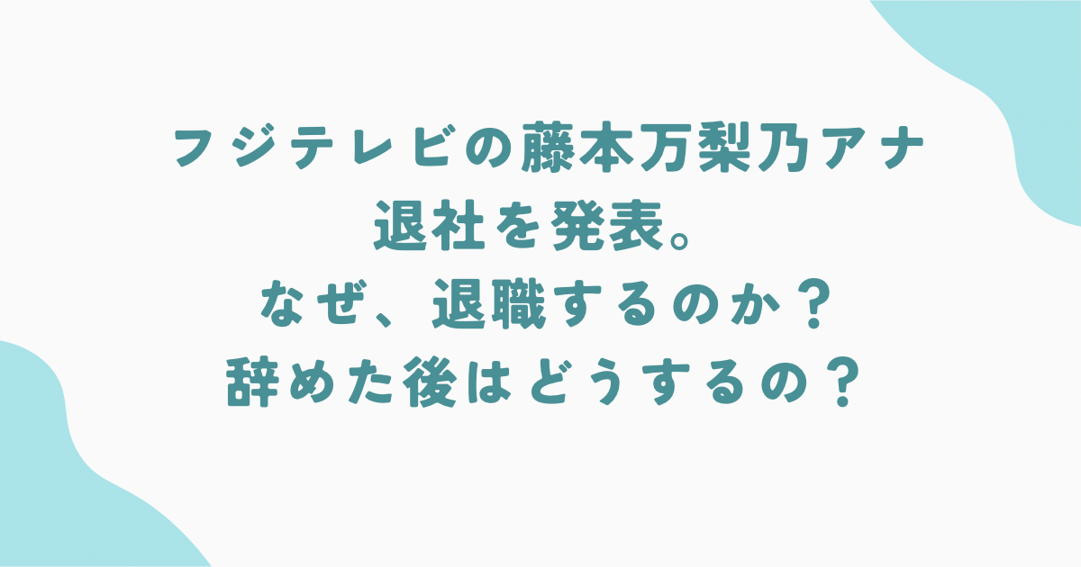 フジテレビの藤本万梨乃アナが退社を発表。なぜ、退職するのか?理由や原因は?辞めた後はどうするの?