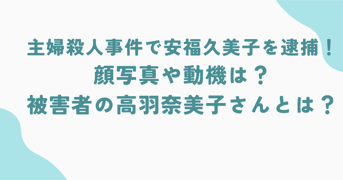 この記事では、事件の経緯や安福容疑者の人物像、そして気になる犯行動機について詳しく解説します。