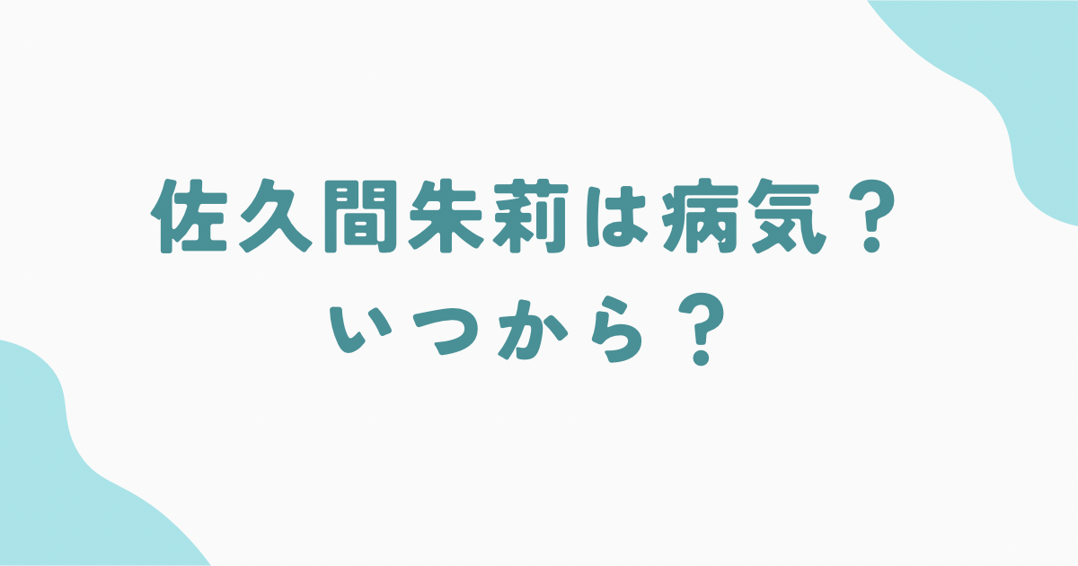 今回は、佐久間朱莉さんの病気の噂は本当なのか?いつからなのか?**について詳しく調べてみました。