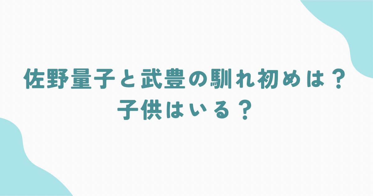 佐野量子と武豊の馴れ初めは?子供はいる?