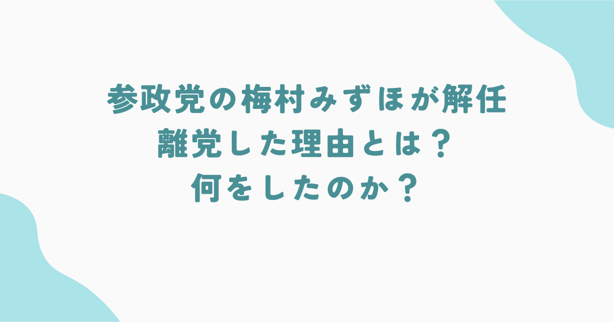 参政党が梅村みずほ氏をボードメンバーから解任した理由は、党が定めたガイドラインや指示に従わない行為が続き、結果として情報管理や発言の扱いが党の統制を乱すと判断したためです。具体的な発端は国会内の仕事スペースをめぐる週刊誌報道など外部に出たやり取りですが、党側は単一の出来事だけでなく注意や指示を無視する継続的な問題を重視しました。今回の決定は、組織の規律維持と外部信用の確保を優先したものであり、今後の党運営や梅村氏の政治活動に影響を与えることが予想されます。