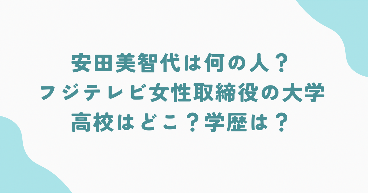 「そもそも安田美智代って誰?」「どんな経歴の人?」「どこの大学出身なの?」と気になる人も多いのではないでしょうか。