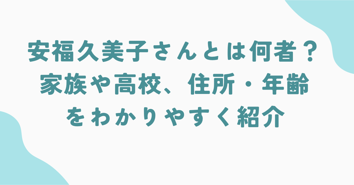 この記事では、報道で明らかになっている範囲から、安福久美子さんの年齢・住所・家族・高校・職業・顔写真の有無などをわかりやすく整理して紹介します。