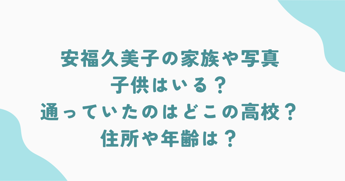 今回は、報道で明らかになっている範囲をもとに、安福久美子さんの年齢・住所・家族構成・高校・職業・写真の有無などについて、わかりやすくまとめました。