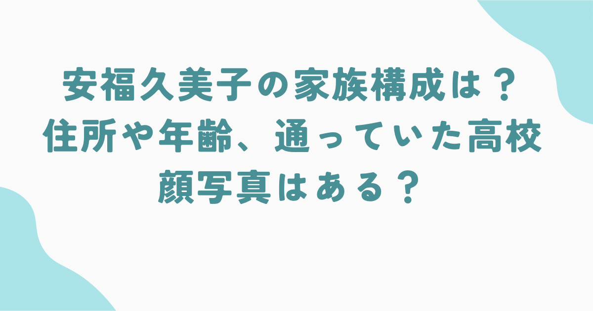 この記事では、安福久美子容疑者の家族構成・住所・高校・顔写真の有無など、現時点で明らかになっている情報を整理し、彼女の背景を探ります。