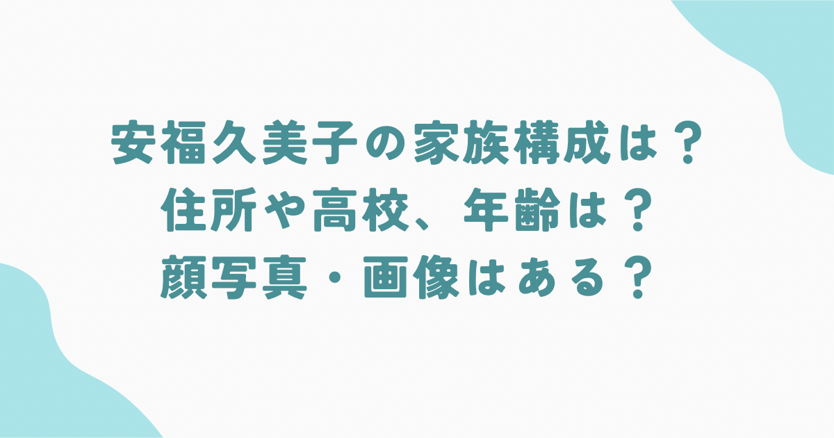 この記事では、安福久美子容疑者の家族構成・住所・高校・年齢・顔写真の有無など、現時点で報道されている情報をまとめるとともに、
