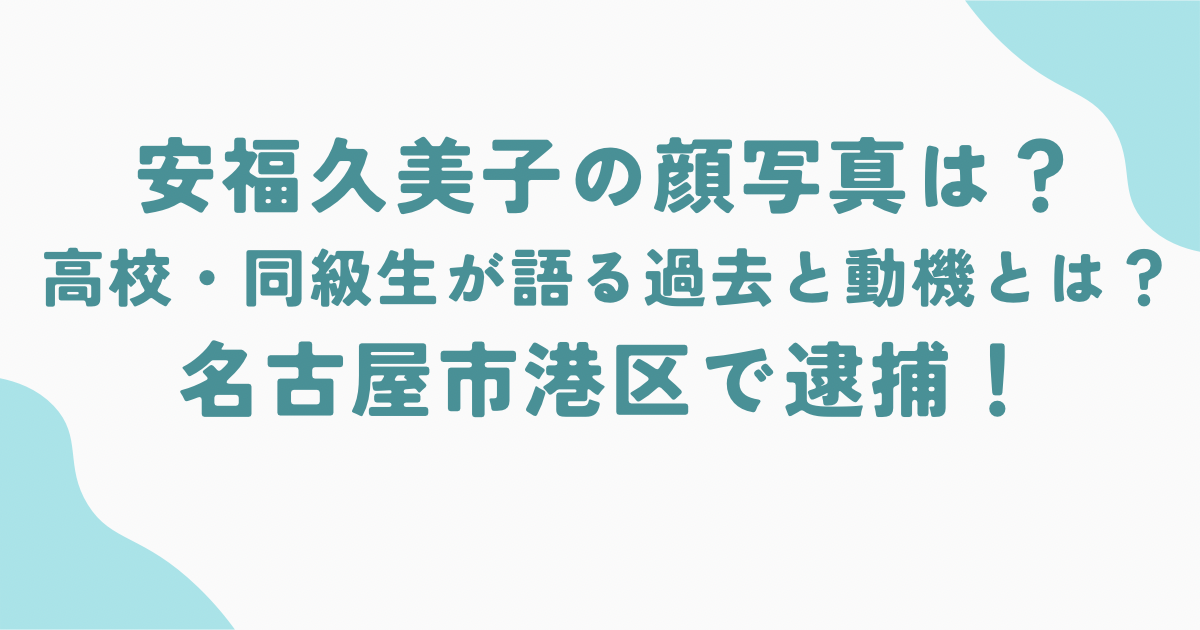 本記事では、安福久美子容疑者の人物像や高校時代の同級生の証言、そして犯行動機の可能性について詳しくまとめます。