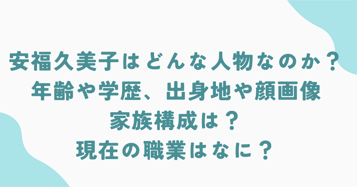 この記事では、現在わかっている安福久美子容疑者の 年齢・出身地・学歴・家族構成・職業 などについて、
