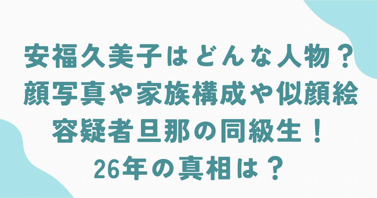 この記事では、安福久美子容疑者とはどんな人物なのか、家族や生活、そして事件の真相に迫ります。