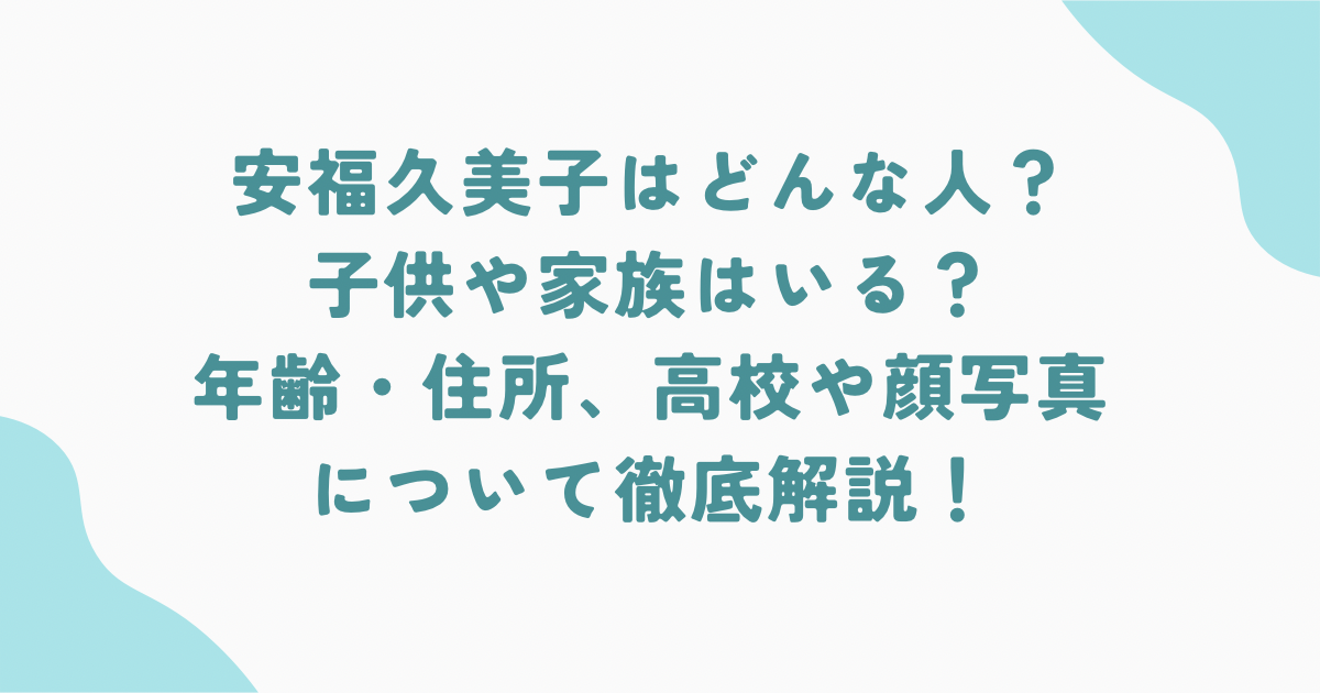 この記事では、報道などで分かっている範囲から、安福久美子容疑者の年齢・住所・家族構成・高校・顔写真などについて整理し、人物像を詳しく見ていきます。