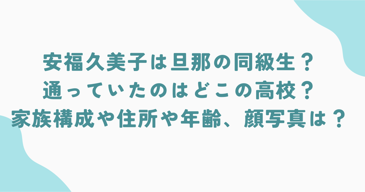 安福久美子さんの年齢・住所・家族構成・高校・顔写真の有無などをわかりやすくまとめていきます。