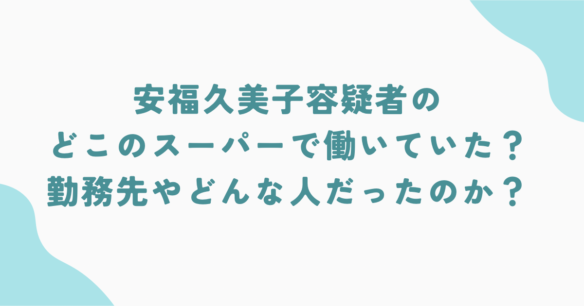 この記事では、安福久美子容疑者がどこのスーパーで働いていたのか、勤務先での様子や人物像について詳しく解説します。