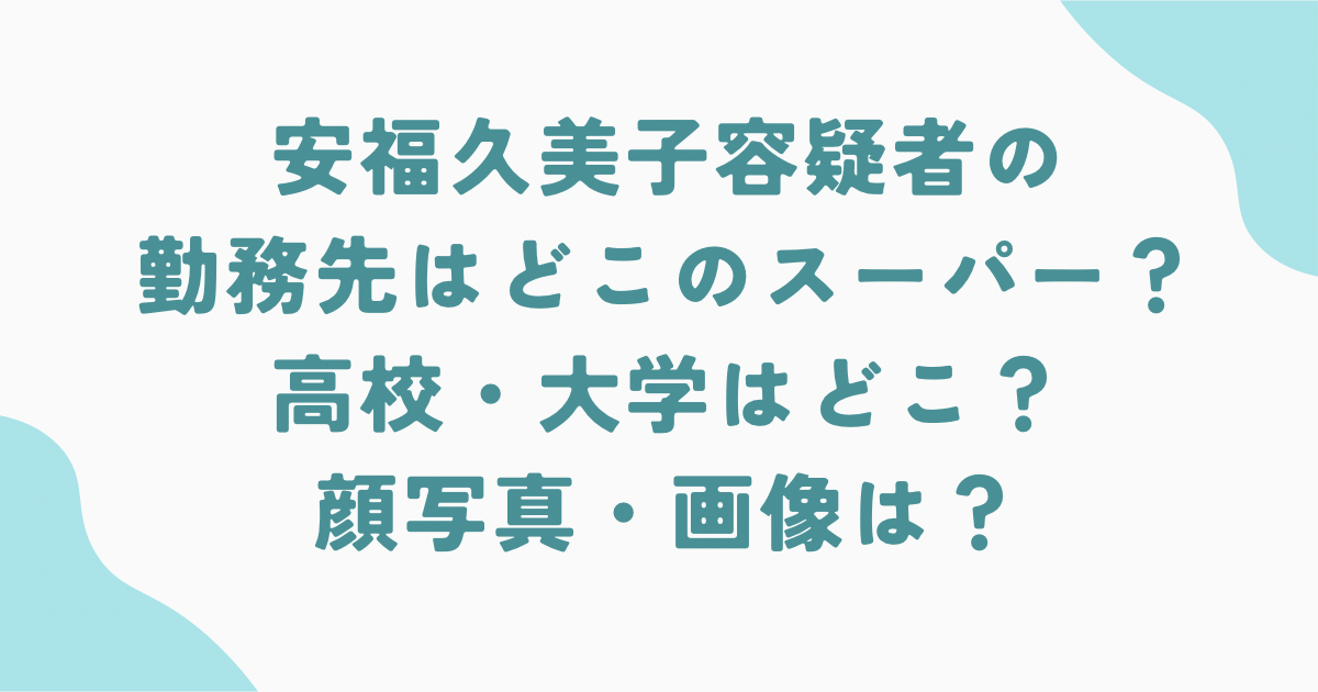 この記事では、安福久美子容疑者の勤務先のスーパー、出身高校や大学などの学歴、さらに顔写真や人物像について詳しく解説します。