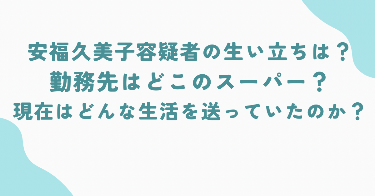 安福久美子容疑者の生い立ちは?勤務先はどこのスーパー?現在はどんな生活を送っていたのか?