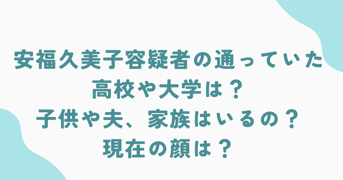 2025年11月現在、安福久美子容疑者の顔写真は公表されていません。