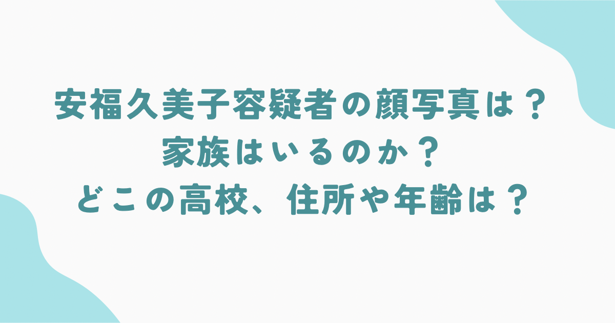 本記事では、現在わかっている情報をもとに、安福久美子容疑者の顔写真・家族・高校・住所・年齢について詳しくまとめます。