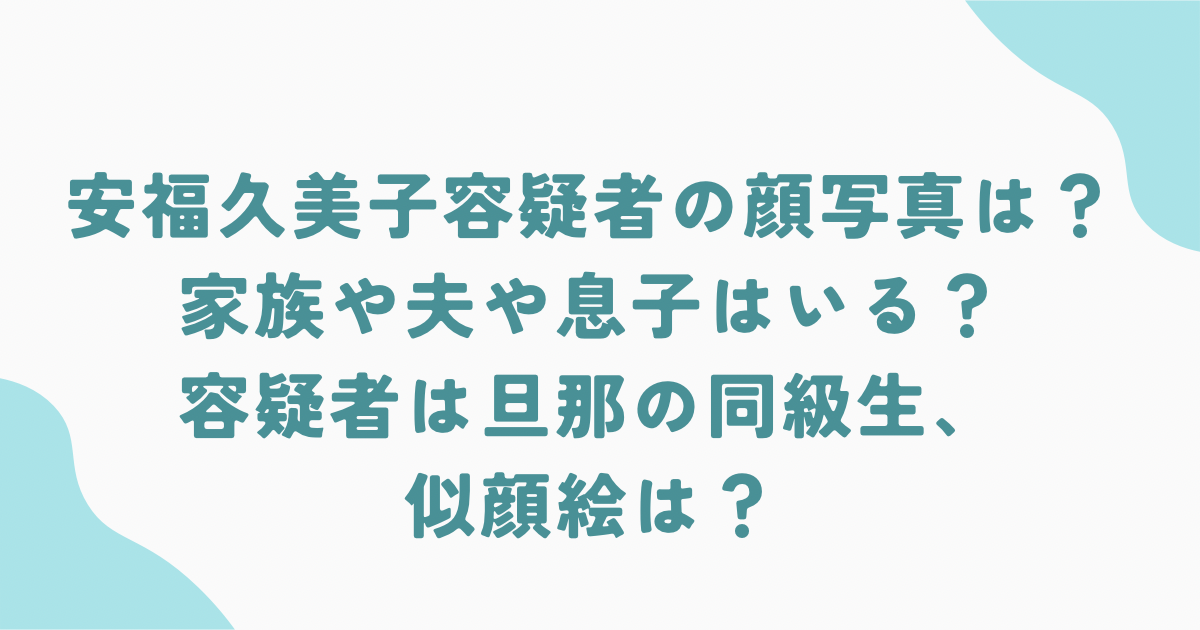 今回は、安福久美子容疑者の顔写真・家族構成・夫や息子の存在・旦那の同級生という関係性、