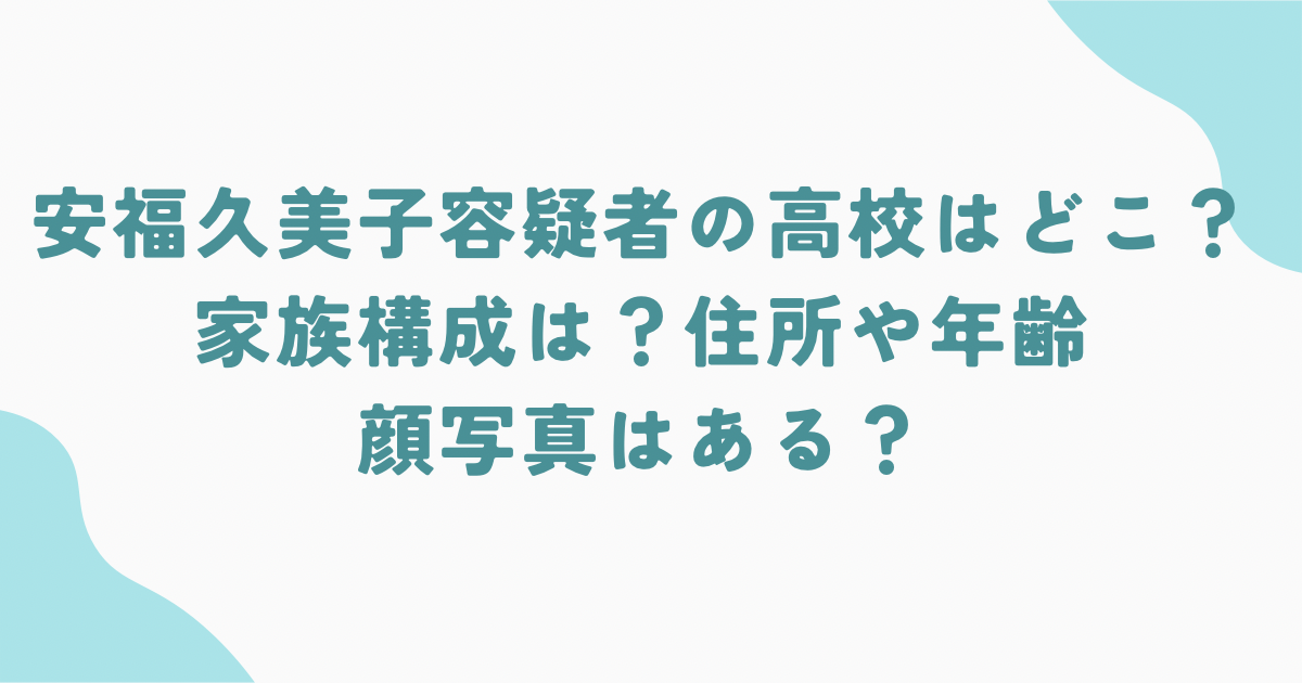 安福容疑者の高校や家族構成、住所、顔写真などにも注目が集まっています。