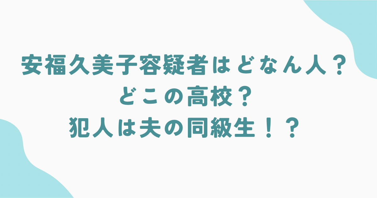 この記事では、報道で明らかになっている範囲から、安福久美子容疑者の人物像・高校・家族構成・事件との関係などを整理して解説します。