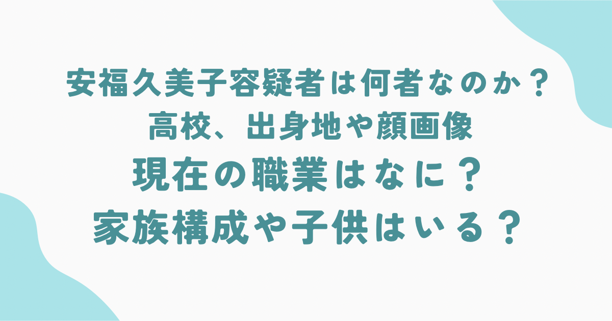安福久美子容疑者の出身地・学歴・職業・家族構成などを整理してご紹介します。