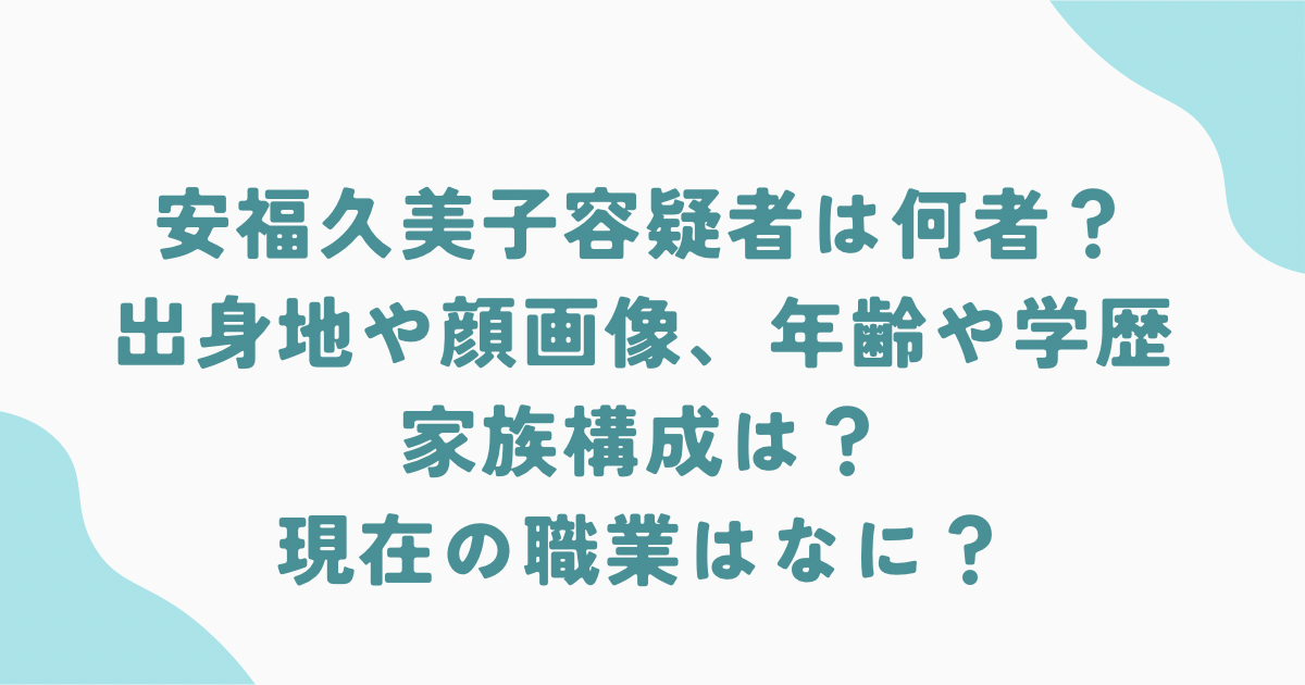 この記事では、報道で明らかになっている情報や背景をもとに、安福久美子容疑者の人物像を整理していきます。