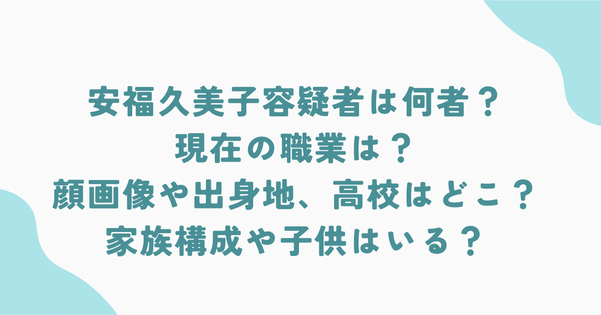 現時点で、安福久美子容疑者の顔写真は公開されていません。