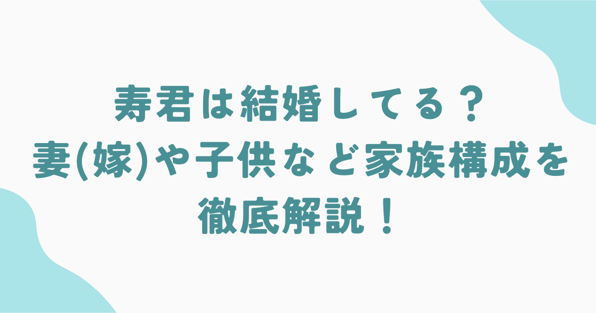 寿君は結婚してる?妻(嫁)や子供など家族構成を徹底解説!