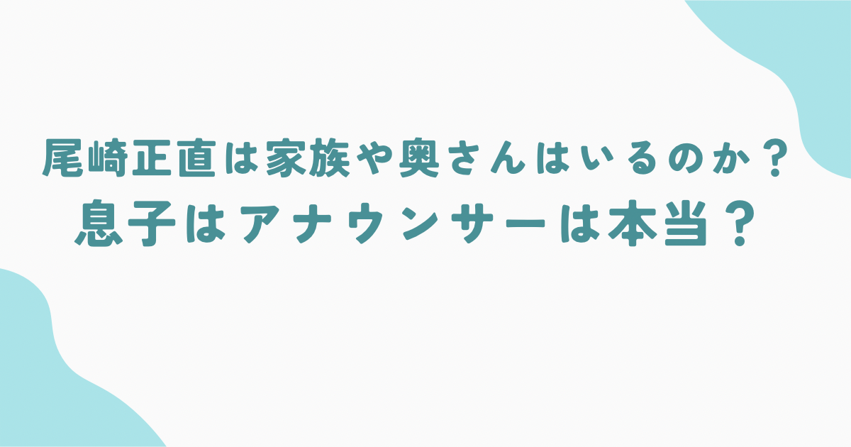 この記事では、尾崎正直氏の家族や妻、息子の情報をわかりやすくまとめていきます。