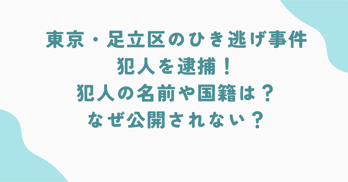 足立区のひき逃げ事件は被害の深刻さから多くの注目を集めていますが、氏名・国籍が報道されない理由は単純ではありません。