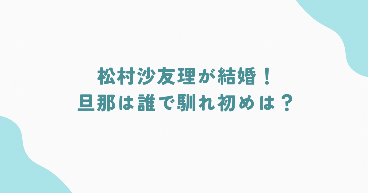 この記事では、松村沙友理さんの結婚相手、二人の馴れ初め、交際時期などを分かりやすくまとめて紹介します。