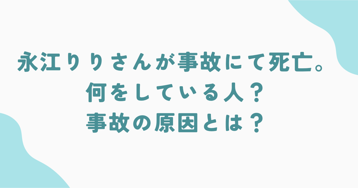 この記事では、永江りりさんがどのような人物だったのか、そして事故の原因について現在わかっていることをまとめました。